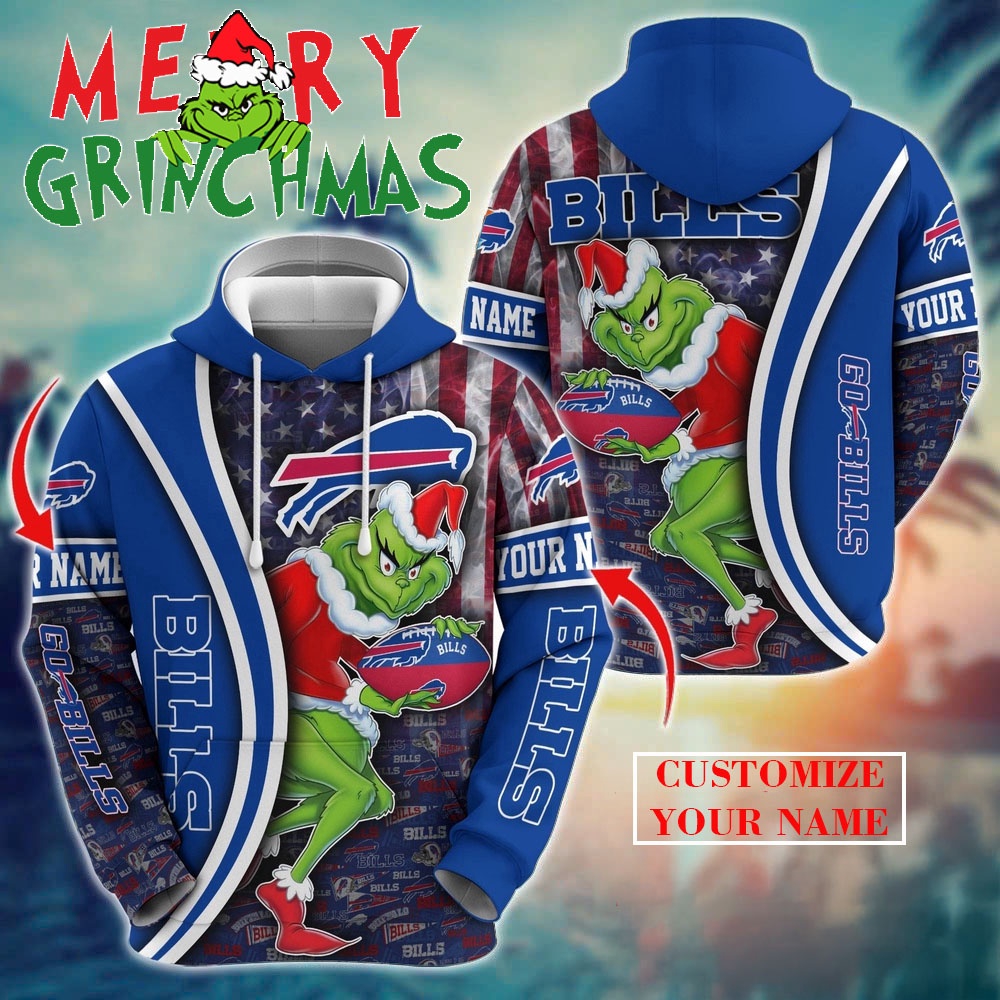 Buffalo Bills NFL Merry Grinchmas 2025 Custom Name Hoodie Shirt