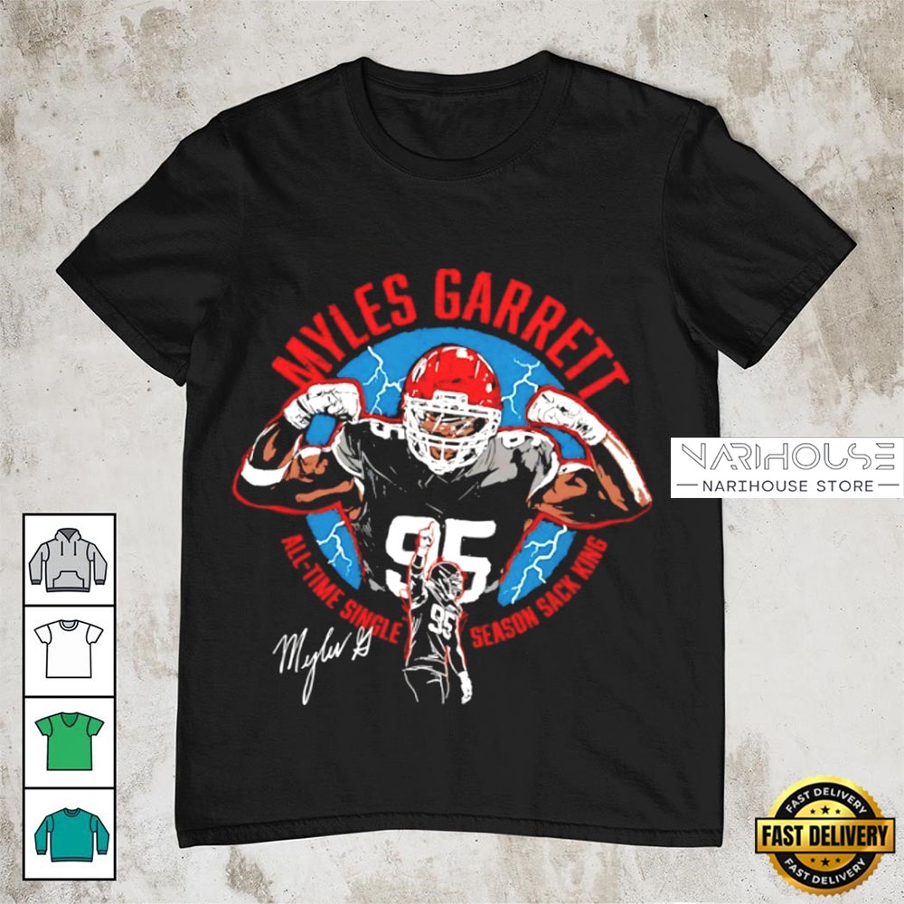 Photos Of Cleveland Browns Myles Garrett All-Time Sack King Signature T-Shirt