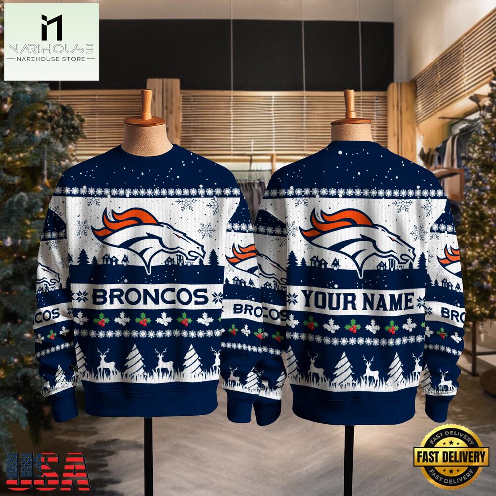 Photos Of Denver Broncos NFL Snow Special Custom Name Ugly Christmas Sweater
