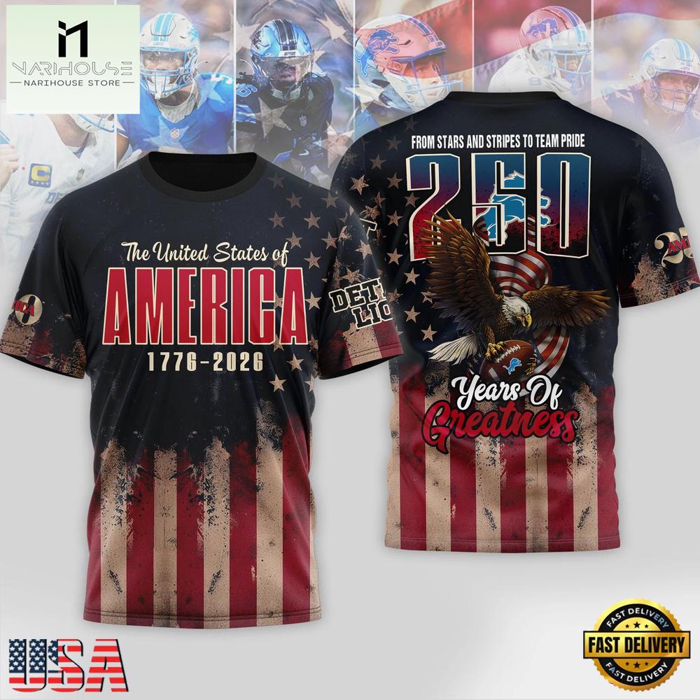 Detroit Lions NFL 250th Anniversary Of America 2026 Unisex T-Shirt