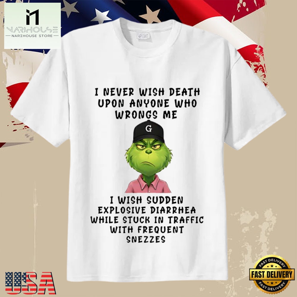 Photos Of I Never Wish Death Grinch Funny Quote Sudden Explosive Diarrhea T-Shirt