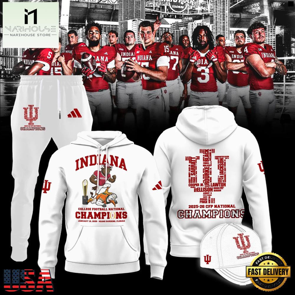 Indiana Hoosiers CFP National Champions 2026 Mascot Winner White Unisex Hoodie Shirt
