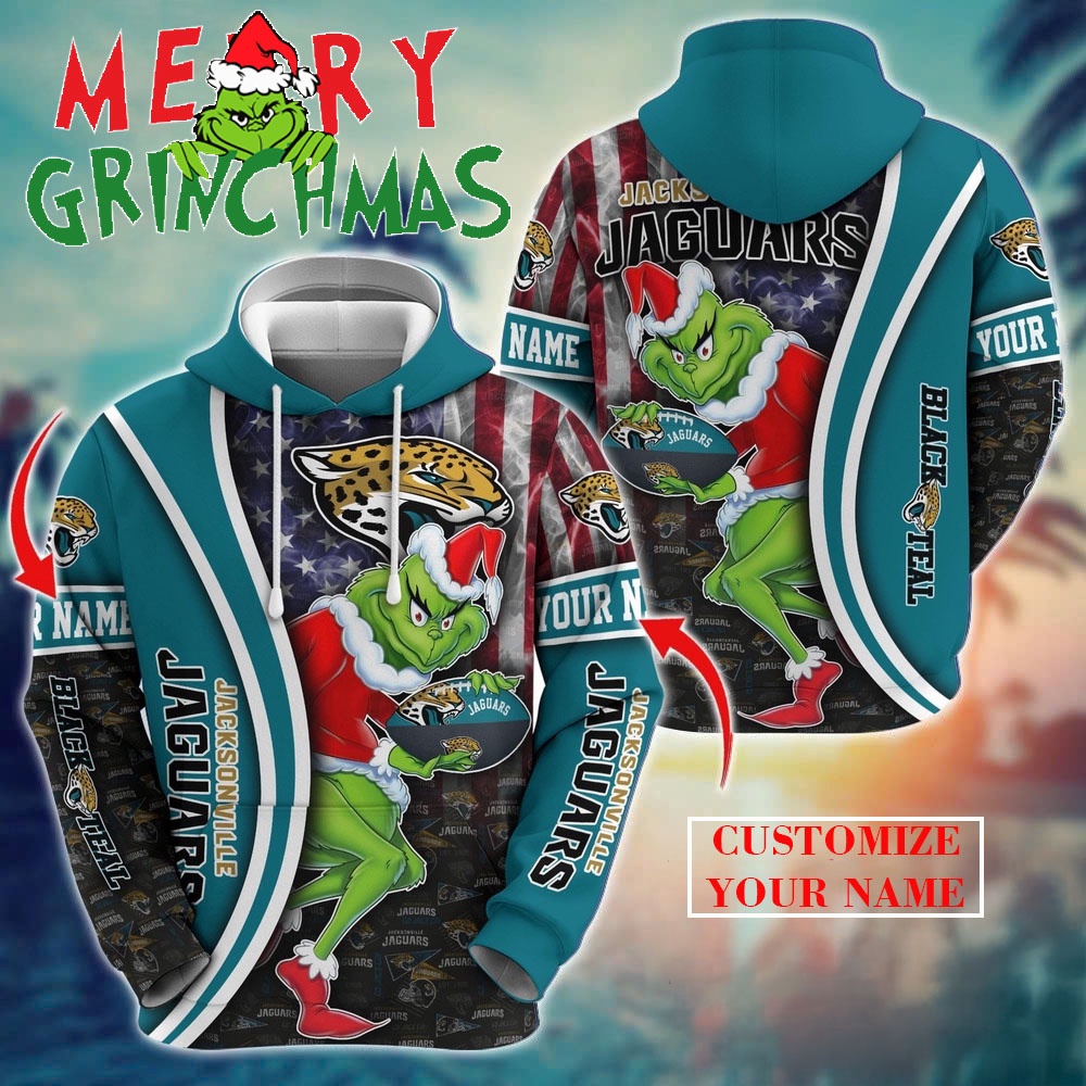 Jacksonville Jaguars NFL Merry Grinchmas 2025 Custom Name Hoodie Shirt