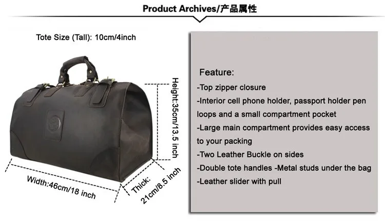 Hot Vintage Men’s 100% Real Leather Tote Luggage Bag Travel Bag Duffle Gym Bag M051#