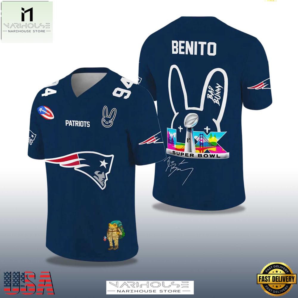 Photos Of New England Patriots x Bad Bunny 2026 Super Bowl LX Football Jersey