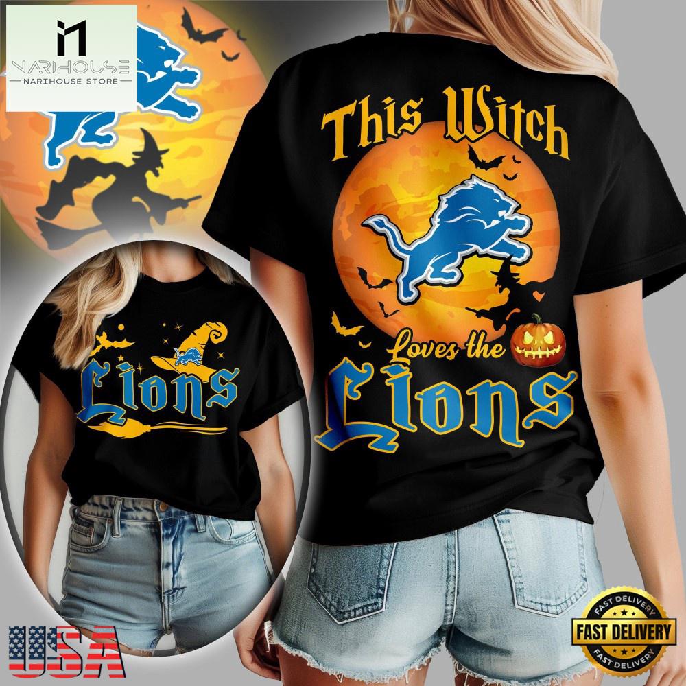 Photos Of NFL Detroit Lions 2025 Halloween Witch Women Shirt