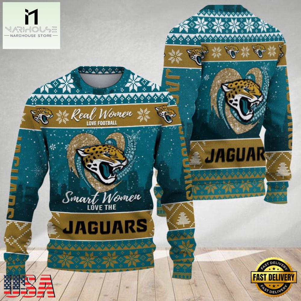 NFL Jacksonville Jaguars Real Women Love Football 2025 Ugly Xmas Sweater is a Christmas sweater with funny, humorous, and quirky patterns. It will be a meaningful gift for you to show your love and care for your loved ones.