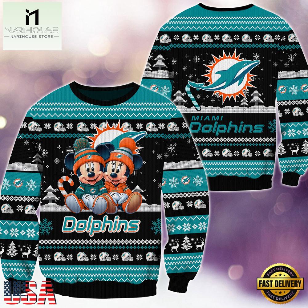 NFL Miami Dolphins Mickey Minnie New Design 2025 Ugly Xmas Sweater