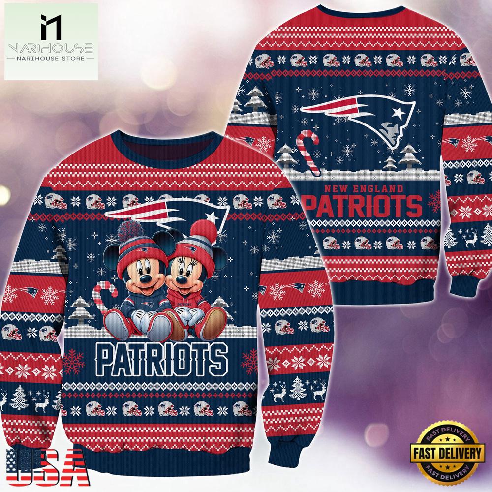 NFL New England Patriots Mickey Minnie New Design 2025 Ugly Xmas Sweater is a Christmas sweater with funny, humorous, and quirky patterns. It will be a meaningful gift for you to show your love and care for your loved ones.