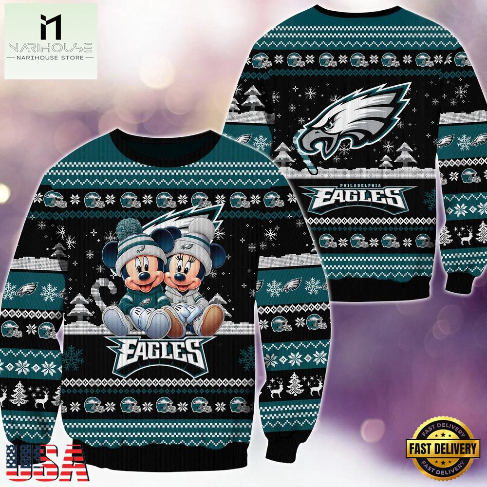 Photos Of NFL Philadelphia Eagles Mickey Minnie New Design 2025 Ugly Xmas Sweater