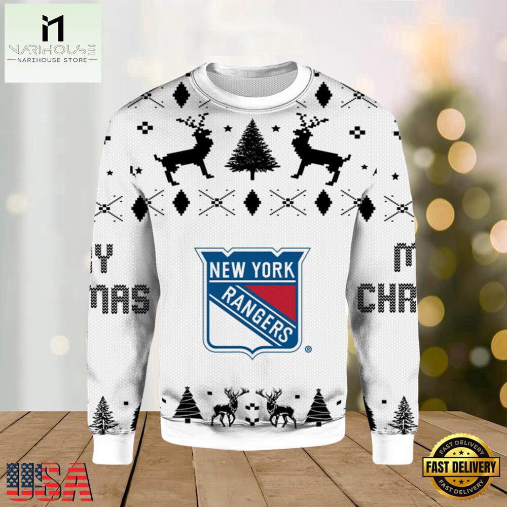 NHL New York Rangers Logo New Design Ugly Xmas Sweater is a Christmas sweater with funny, humorous, and quirky patterns. It will be a meaningful gift for you to show your love and care for your loved ones.