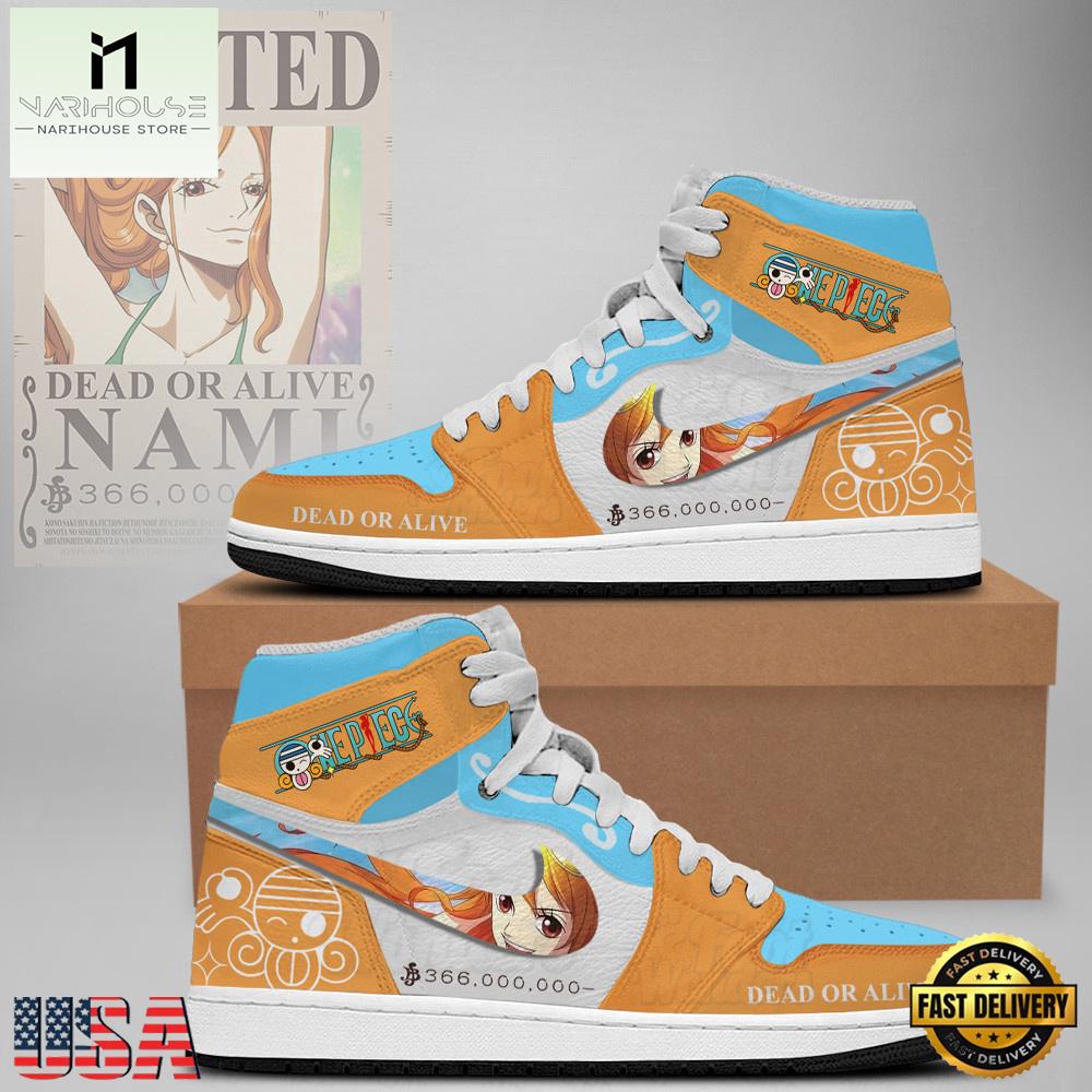One Piece – Wanted Nami Limited Edition Nike Air Jordan 1 High Top Shoes, Running Sneakers