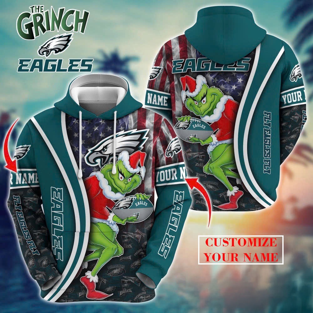 Philadelphia Eagles NFL Merry Grinchmas 2025 Custom Name Hoodie Shirt