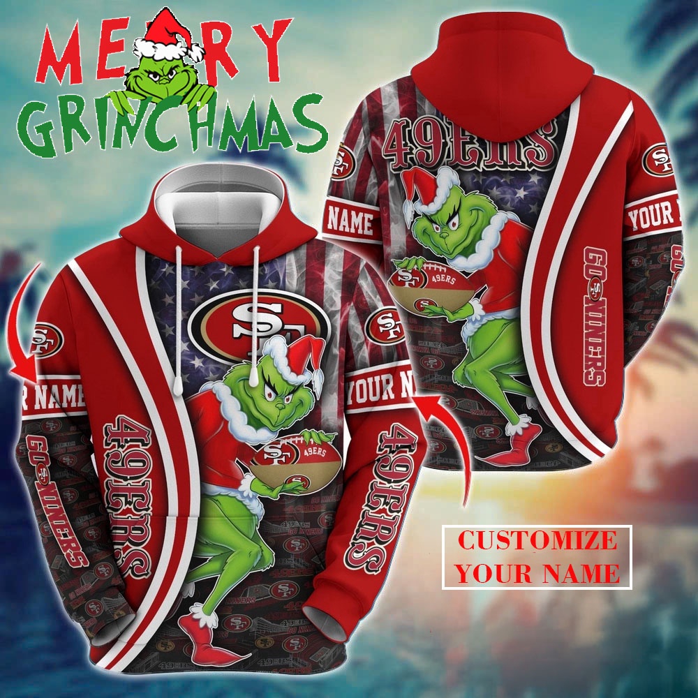 San Francisco 49ers NFL Merry Grinchmas 2025 Custom Name Hoodie Shirt