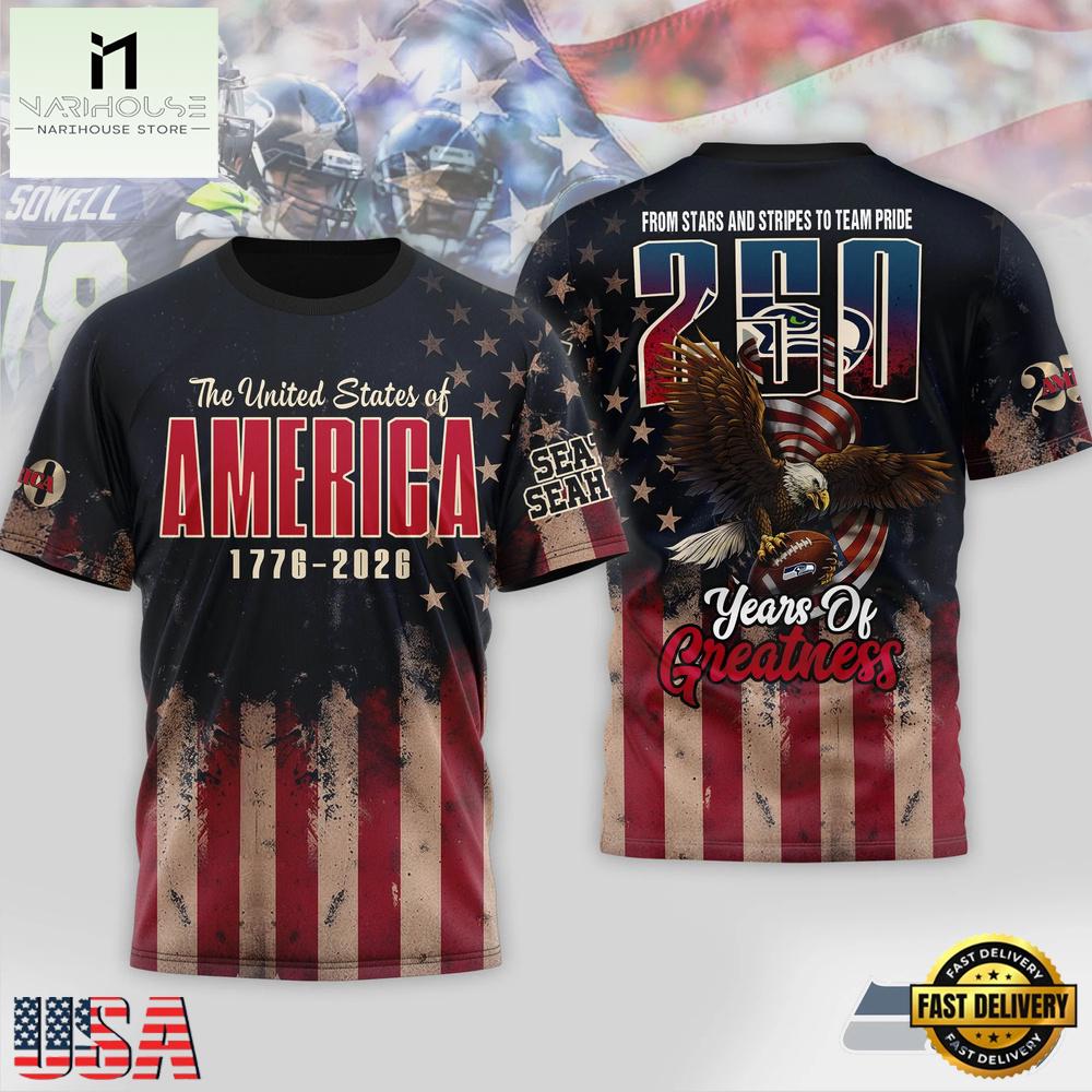 Seattle Seahawks NFL 250th Anniversary Of America 2026 Unisex T-Shirt
